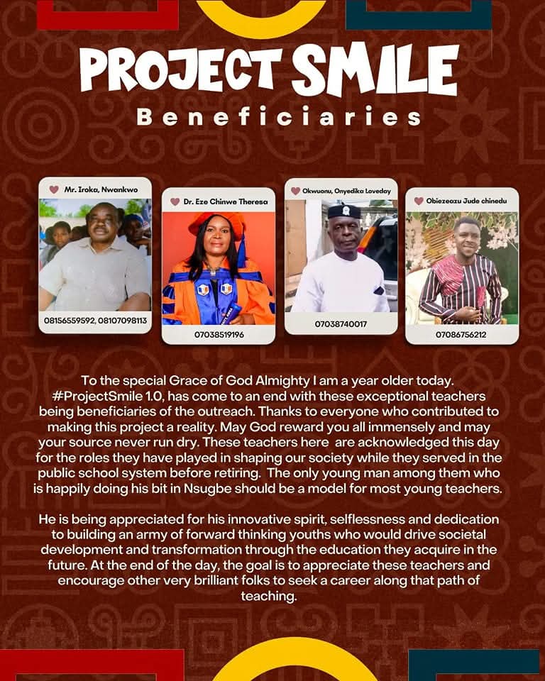 One of the most recent community services I rendered was done some few years ago when I asked for phenomenal teachers from public schools to be nominated, who we rewarded with some sums of money to thank them for the thankless job a lot of them do.